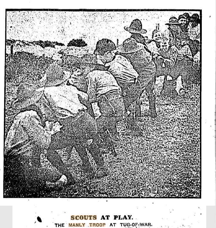 NO 1 DISTRICT – Manly; scoutmaster Foggon reports that a successful afternoon’s work was carried out last Saturday. The Troop was marched out to Balgowlah. Having arrived there a base of operations was established and patrols were sent out in various directions with instructions to find their way back, unseen, by a different track to that on which they set out. After this, three scouts were sent out, unbeknown to the remainder, who, having given them a reasonable start, set out to track them. The tracking was very satisfactory, but the three that had been sent out arrived at the base without being caught, after being chased for about half an hour.