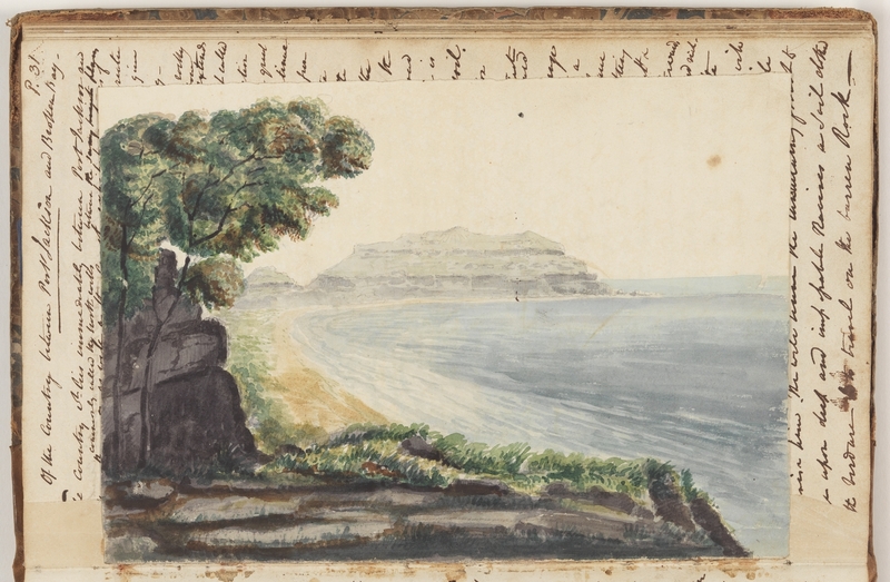 South Head of Hawkesbury River called by the Natives Barrenjuee [sic]. W.R.G. Image No.: a5504050 from; William Govett notes and sketches taken during a surveying Expedition in N. South Wales and Blue Mountains Road by William Govett on staff of Major Mitchell, Surveyor General of New South Wales, 1830-1835