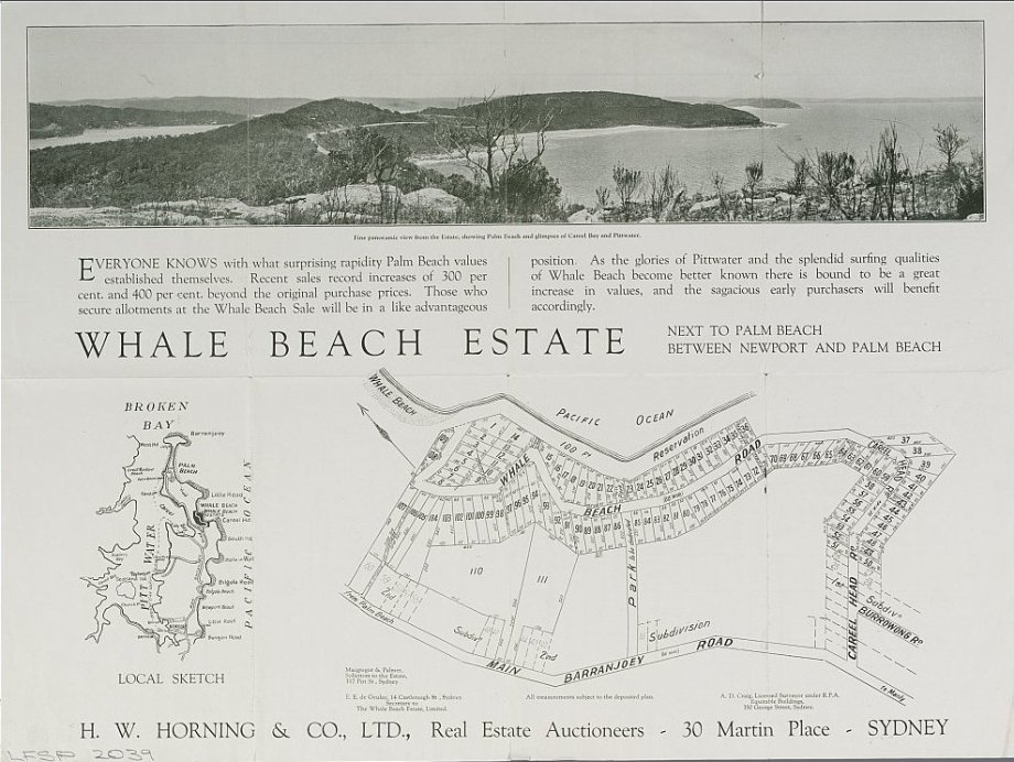 Whale Beach estate [cartographic material] 1921. MAP Folder 129, LFSP 2039. Above Part 1. Below Part 2 - courtesy National Library of Australia.