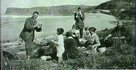 During 1936 Bungan Beach was the place the touring Monte Carlo Russian Ballet had a picnic. This Company of sixty-two dancers toured Australia for nine months during 1936-37. The photographs of their visit to Bungan show they seemed to have enjoyed their day out in the salt breezes and pristine waters. The land behind them is still relatively undeveloped.