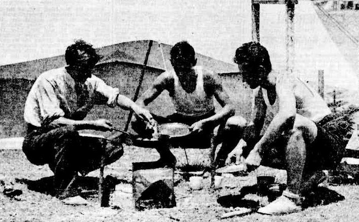 CLEANING THE CATCH AFTER A FISHING EXPEDITION. THE "COOKING FATIGUE" PREPARES THE MIDDAY MEAL. PICTURES: FORTUNATE HOLIDAY MAKERS, IN UNCONVENTIONAL ATTIRE, SCORN THE HEAT AT NARRABEEN CAMP COLONY. (1930, January 3). The Sydney Morning Herald (NSW : 1842 - 1954), p. 14. Retrieved from http://nla.gov.au/nla.news-article16614906