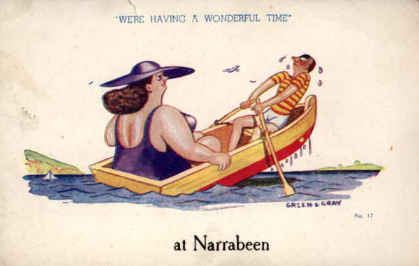"WE'RE HAVING A WONDERFUL TIME" at Narrabeen – circa 1950: postcard: Image No: pc003647, courtesy State Library of Victoria.