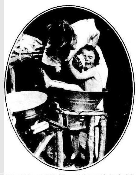 SOAPSUDS AND SCREAMS.-This young lady protested