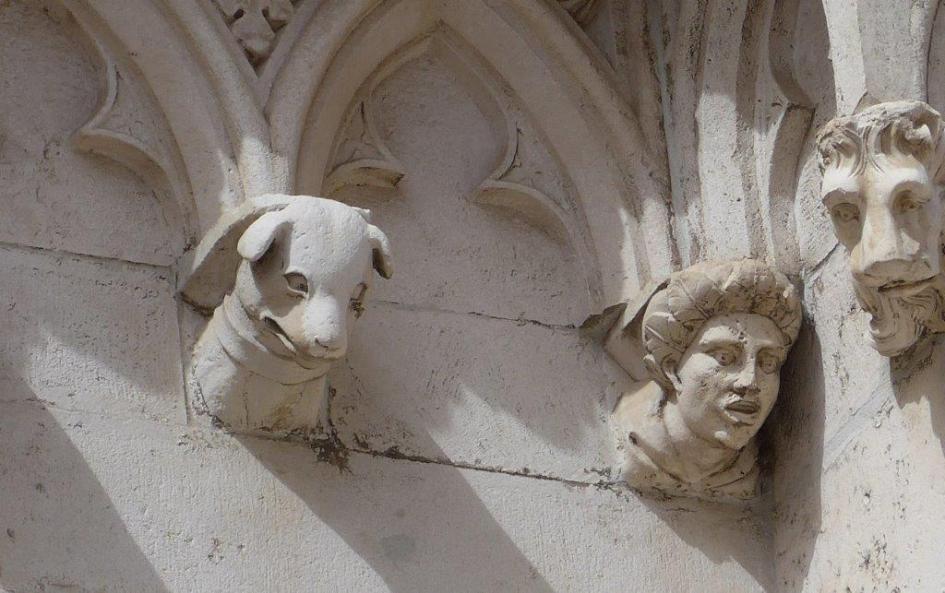 An interesting feature of the building are rows of sculptured heads on the outside wall, believed to be images of the procurators who arranged the finances for the construction work. They are anonymous. There are also occasional heads of animals.