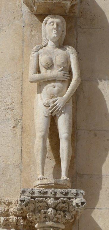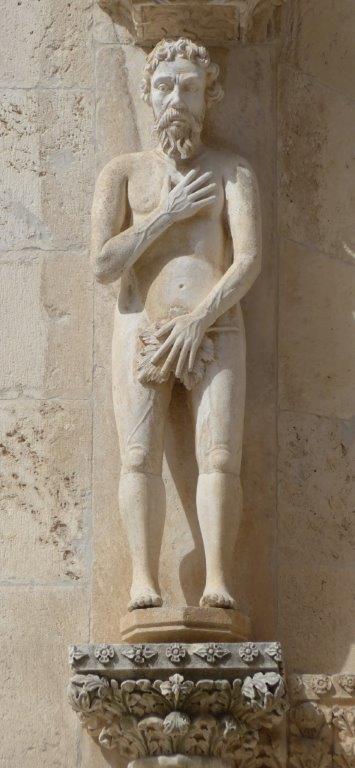 Side entrance from the adjoining square - flanked by statues of Adam and Eve on columns supported by lions.