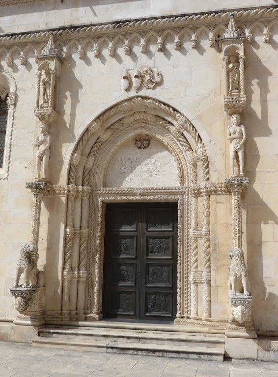 The Cathedral is constructed entirely of stone with limestone from a nearby quarry and marble from the island of Brač.
