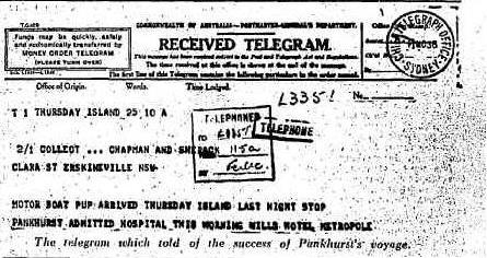 W. PANKHURST ARRIVES AT THURSDAY ISLAND. (1936, November 12). Referee (Sydney, NSW : 1886 - 1939), p. 1. Retrieved fromhttp://nla.gov.au/nla.news-article135645263