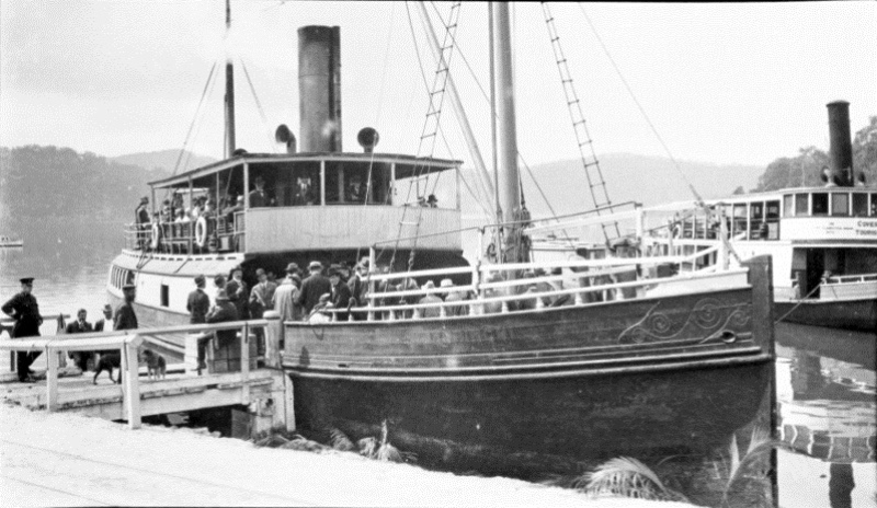 This image depicts the Hawkesbury Steam Navigation Company's ferry SS ERRINGHI at Brooklyn on the Hawkesbury River. ERRINGHI was purchased by the company in 1912, by the syndicate Captain Jurd was part of in June 1920 and traded on the Hawkesbury River up to the late 1940s. The vessel was scuttled off Sydney Heads in 1951. Image no 20579 courtesy Australian National Maritime Museum and by Samuel Hood.