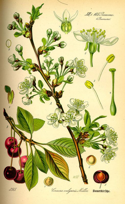 Cherry Illustration: Original book source: Prof. Dr. Otto Wilhelm Thomé Flora von Deutschland, Österreich und der Schweiz 1885, Gera, Germany. Photo pf Cherries - by Stella 444.