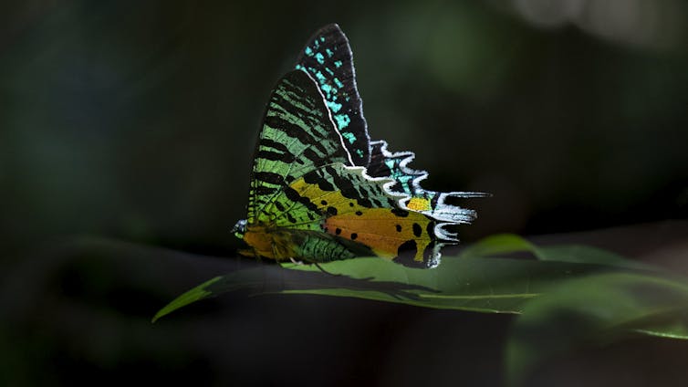 Some butterflies are colourful simply to attract mates. Some, such as monarch butterflies, have aposematic displays, which aim to warn off predators by advertising the butterfly’s potential to be poisonous. Others, such as European swallowtails use deimatic displays, aimed to startle predators by imitating something scary like a face.