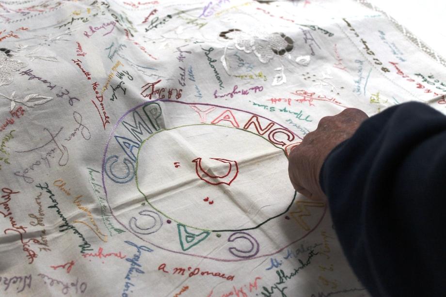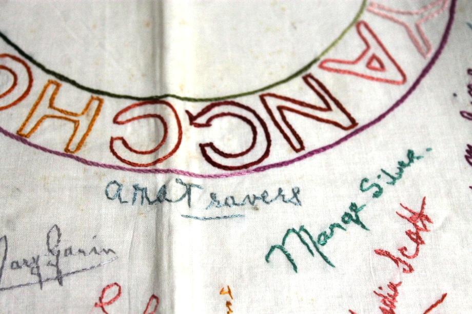 I have her tablecloth from her camp which the camp inmates all signed and then she embroidered their signatures. This is very precious and quite old now of course.