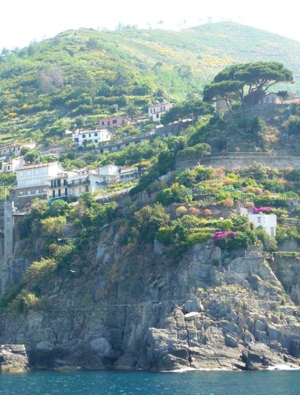 The villages are either concealed in small inlets or cling to the steeply terraced cliffs which are cut across by a complicated system of fields and gardens. The terraces took perhaps two centuries to build because of the enormous work of transporting and carrying the heavy stones required in their construction.