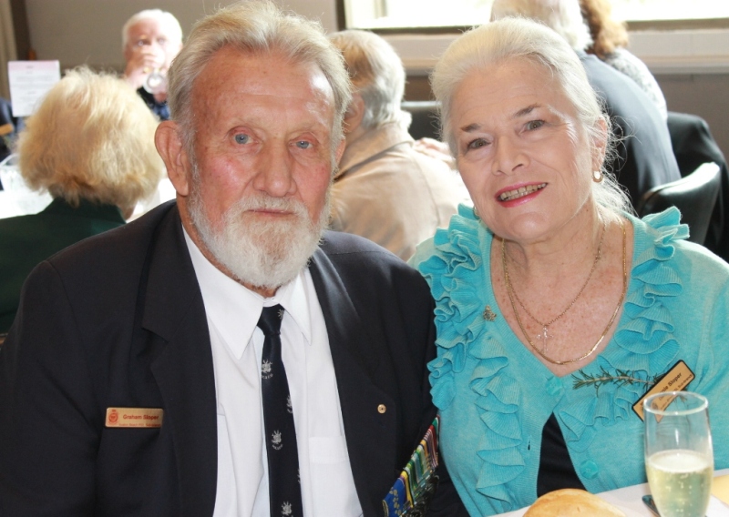 Dannie Sloper, Graham’s wife of almost fifty years, was also acknowledged at the Remembrance Day Luncheon held at Avalon Beach RSL club. Although Dannie has resisted our efforts to speak at length about her decades ‘behind the scenes’, she kindly responded to a few queries on Thursday:
