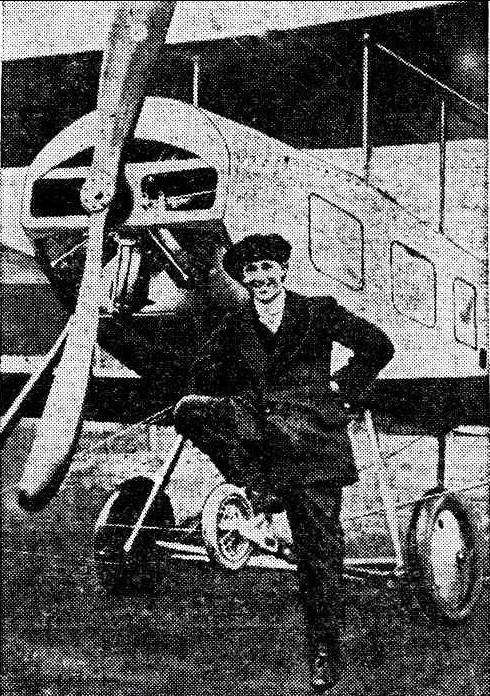 Miss Ruth Vincent, a charming songstress, who has made a name above and on earth. Miss Vincent is seen here wearing the latest in aerial creations. -Photo supplied “Central News”.