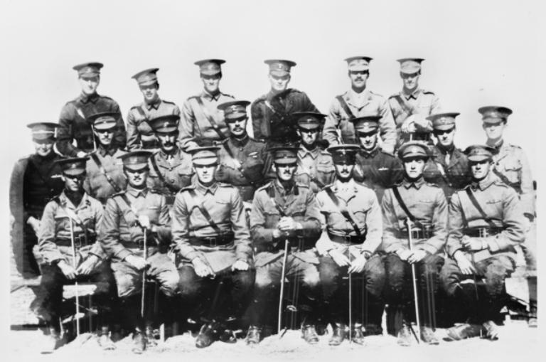 1916. GROUP PORTRAIT OF OFFICERS OF NO. 1 SQUADRON AUSTRALIAN FLYING CORPS (AFC). IDENTIFIED PERSONNEL ARE; (BACK ROW) LIEUTENANTS A. L. MACNAUGHTON; C. J. BROOKES; A. D. BADGERY; C. A. KELLY; S. WOODROW; A. E. GEERE. (CENTRE ROW): LIEUTENANT R. ROSS; CAPTAIN W. SHELDON; MAJOR A. A. BROWN; LT. COLONEL E. H. REYNOLDS; CAPTAIN R. WILLIAMS; LIEUTENANT E. G. ROBERTS; R. S. BROWN; S. J. L. TRELOAR. (FRONT ROW) LIEUTENANTS P. H. MEWLAND; W. E. HART; L. J. WACKETT; CAPTAIN D. V. J. BLAKE; CAPTAIN W. H. ANDERSON; LIEUTENANTS F. H. MCNAMARA and A. MURRAY JONES. Image No.: A04544 courtesy Australian War Memorial