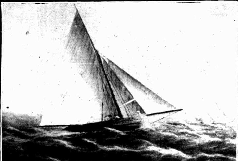 With her tumble home sides and scant freeboard, Australian, but for her after overhang, would have resembled the present-day yacht model. In fact, at a yachting dinner held some years ago, Mr. Walter Reeks, the well-known marine architect of Sydney, stated that he considered that the Australian was 30 years before her time. That gentleman's opinion would seem to be correct, for, but for her counter plan, Sir Thomas Lipton's new challenger strongly resembles the Old' Boxer. One difference, however, between the two boats would be, were Australian with us today, that while Sir Thomas' challenger.- has the advantage of all the latest improvements in regard to construction, Australian was heavily built, and even in her racing days she had iron clamps ,on both sides of her stem. This, as may be assumed, was to prevent her planking from breaking away from her stem. It was under these disadvantages that the old boat raced — aye, and won, too.