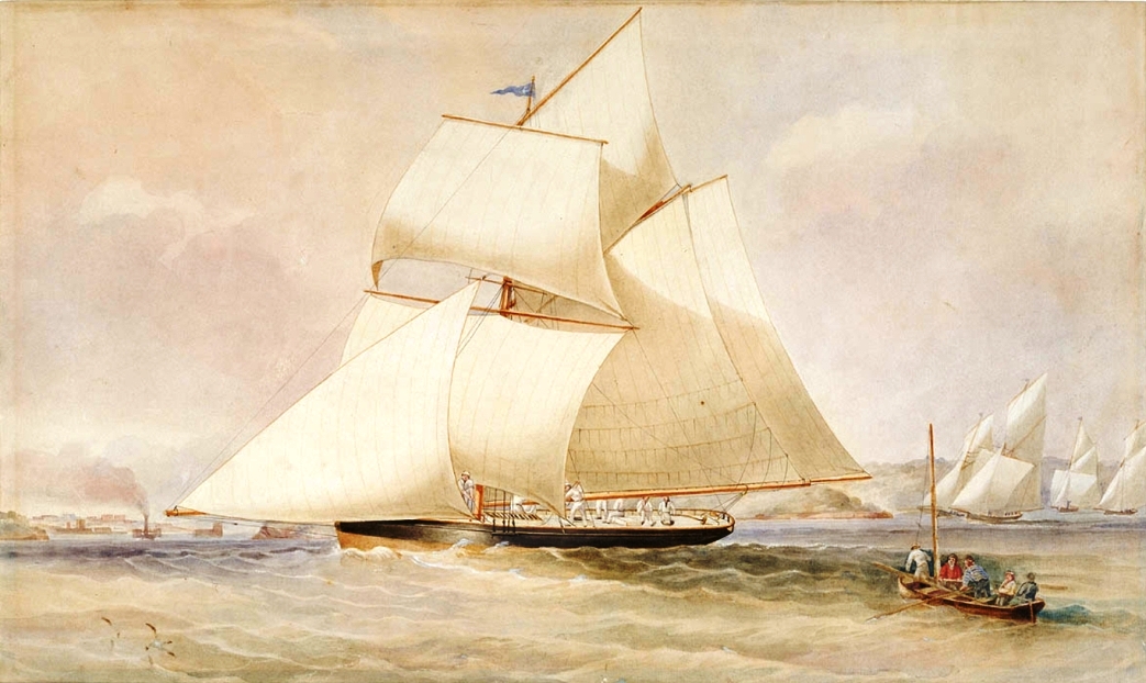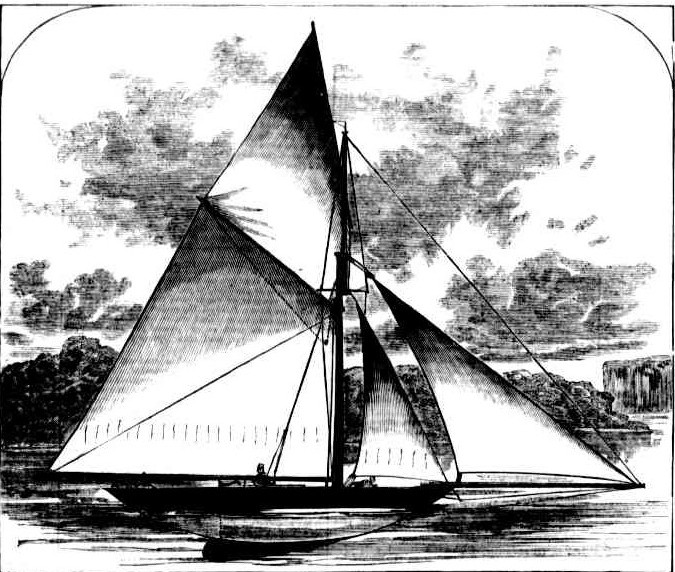 'Away went the yachts before a piping southerly gale, which fairly bent their masts until the cross trees nearly touched the water. It was a glorious sight to see 'these boats in such a breeze, with seas breaking over their bows, and sweeping their decks from stem to stern, bandied with all tho ease and 6kill which could not be expected but from those who made yachting their study.'