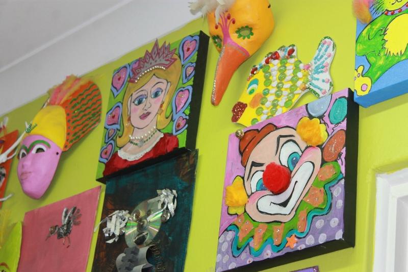 The kids all do these birthday paintings you see on the walls. They pick out what they want and we do a minimum of 10 and maximum of 15 children and they create their own painting with us guiding them through it. We’ll set up a table with craft and a table set up with plates and decorations for the birthday food, which people bring in themselves. So it’s an hour and a half for the art and half an hour for the food and maybe opening presents. They have a great time.