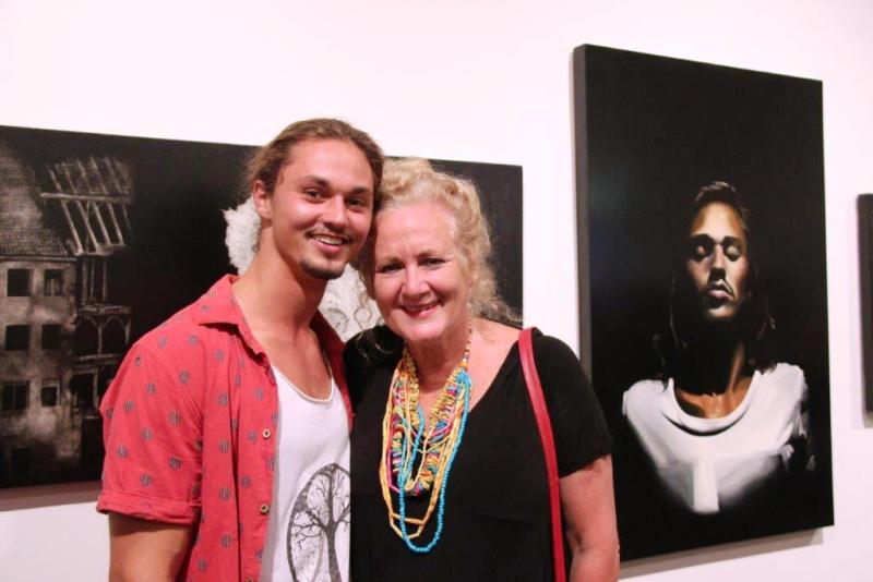 Tom Hammond and Debby at Express Yourself 2015 Opening Night - Two awards are granted annually to students featured in the exhibition. Manly Art Gallery & Museum Society presents a $3,000 award and the Theo Batten Youth Art Award of $5,000 is awarded to a student continuing studies in the arts. Tom Hammond won the Theo Batten award at Express Yourself 2015 - picture courtesy Jean Bentley: