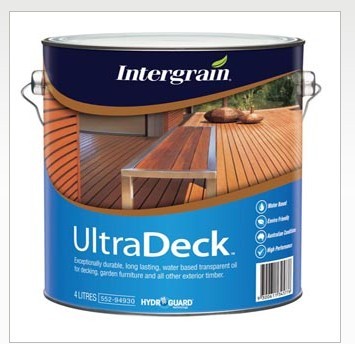 The most important choice to make is whether you want a water based, or oil based product. Traditionally oil based products were preferred as they lasted longer and provided the timber with a richer look. However, with pressure from the government to make products more environmentally friendly water based products have superseded the oils in durability. Intergrain’s “Ultradeck” is the most durable product available in the Orica wood care range and happens to be a water based product. Some people do still prefer the look and feel of the oils as they provide a more natural texture.