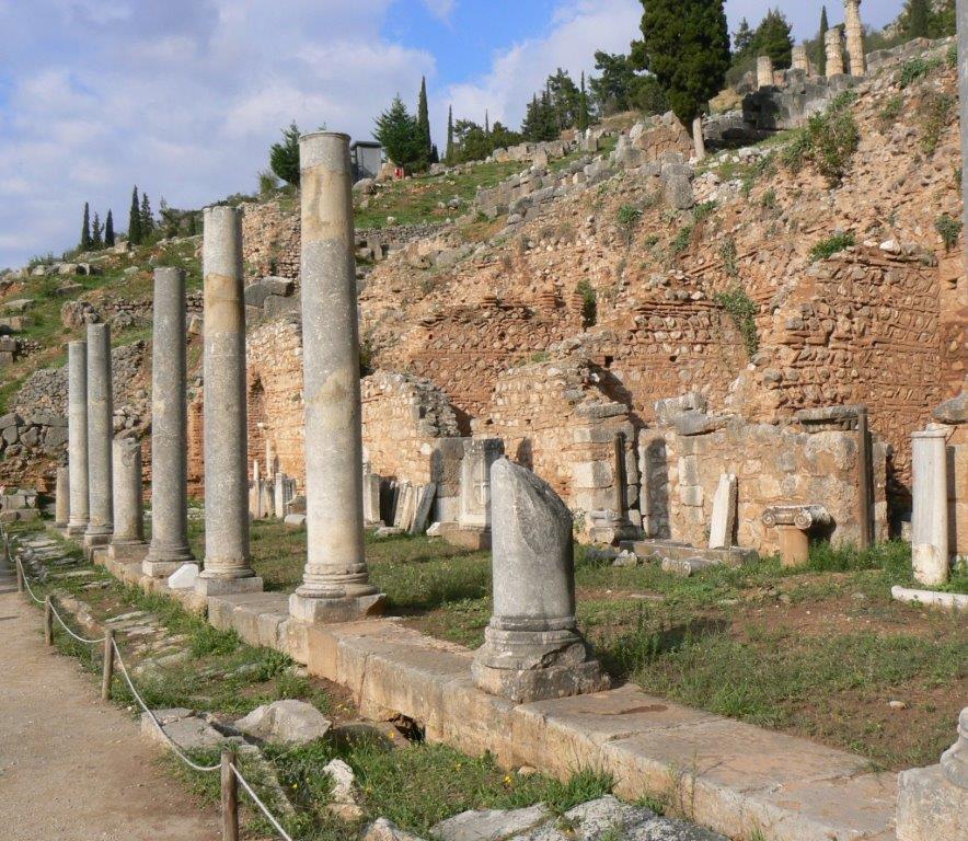 Over the years Delphi grew in magnificence as those who believed that they had benefited from the Oracle’s advice poured riches into the city in the form of buildings, hundreds of votive statues and other works of art - and into treasuries built by various Greek city states to commemorate victories and to thank the Oracle whose advice contributed to the victories. They are called treasuries because they held the offerings made to Apollo.
