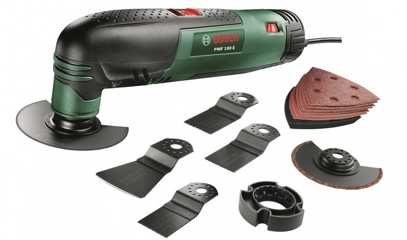 Bosch 190W Multi Tool: $179.00; QUICK OVERVIEW: 15,000-21,000rpm, No-load speed, 2.8 degree Oscillation Angle, 4 step depth stop for segment saw blades, Continuously variable speed, Pre-selection for material specific working, Vibration reduction technology, Comes with 10 accessories.
