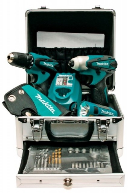 Makita 10.8V Li-Ion Mobile Kit; $250.00, QUICK OVERVIEW: Includes drill driver, impact driver, torch, 2 x 1.3Ah batteries, charger, 24 Piece bit set, holster and steel carry case.