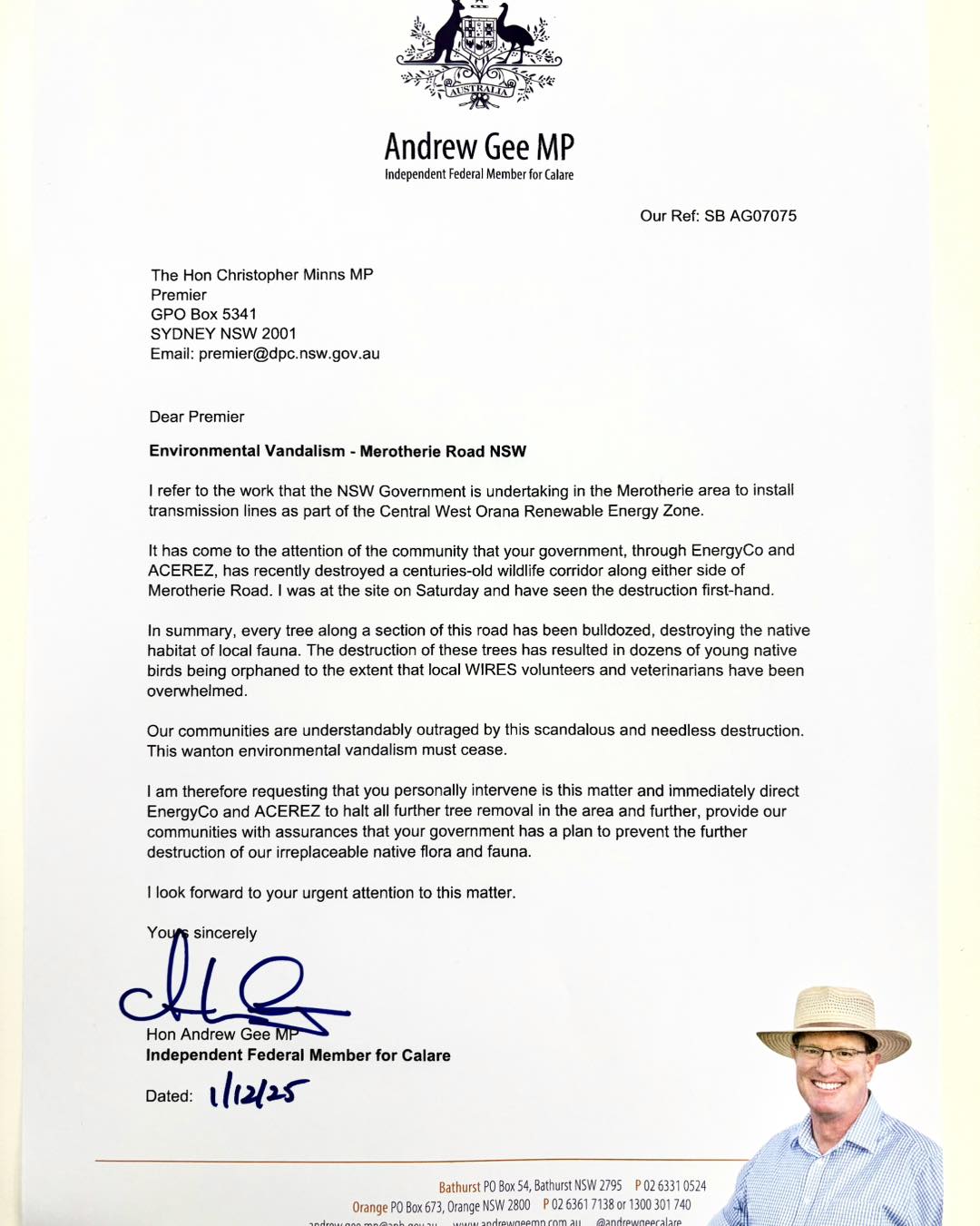Former Nationals MP, now an Independent, Andrew Gee, has shared a letter penned to the Premier on this matter:
