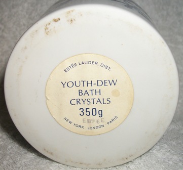 This porcelain jar holds the discontinued and some sources state rare Youth Dew Bath Crystals. Although these are at least 36 years old they still give off quite a potent scent and turn the water a green-blue when added. Other Estee Lauder porcelain such as ‘Country Garden’ and Art Deco swirls and motifs continue to be traded worldwide by those with a keen interest in all things make-up and perfume orientated or even by those who collect promotional keepsakes.