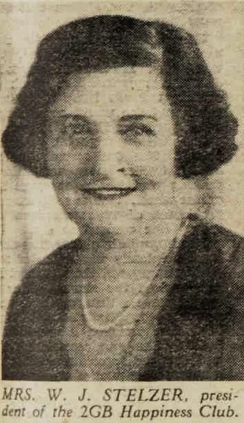 PHOTO: MRS. W. J. STELZER, One of the lady announcers of broadcasting station 2GB,Sydney. RADIO: Studio News and Personalities. (1932, January 6).Sydney Mail (NSW : 1912 - 1938), p. 41. Retrieved from http://nla.gov.au/nla.news-article160082141