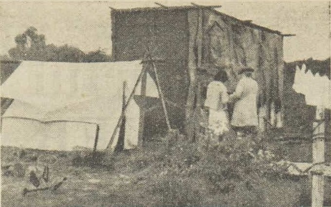 Above: MRS. SABIN, president of the Manly branch of the Happiness Club, investigating a case at Manly, where the branch is supplying timber to rebuild this shack. THIS CLUB BRINGS REAL HAPPINESS... (