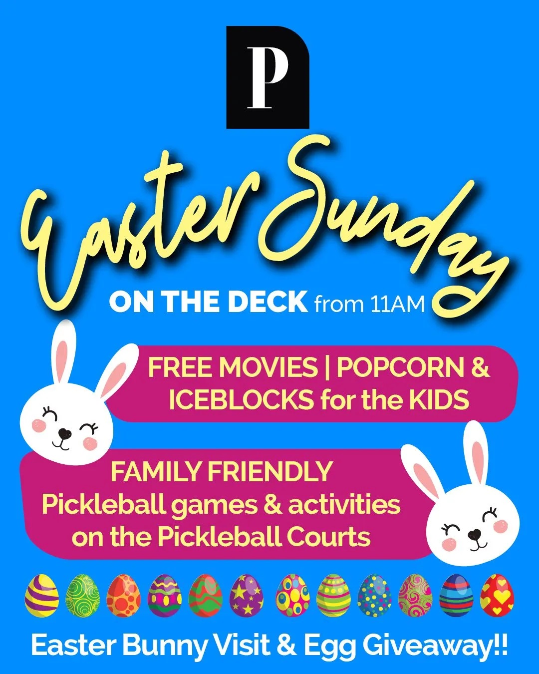 - Easter Bunny Visit: Keep a lookout for a very special guest. The Easter Bunny will be stopping by for a visit and a festive egg giveaway!