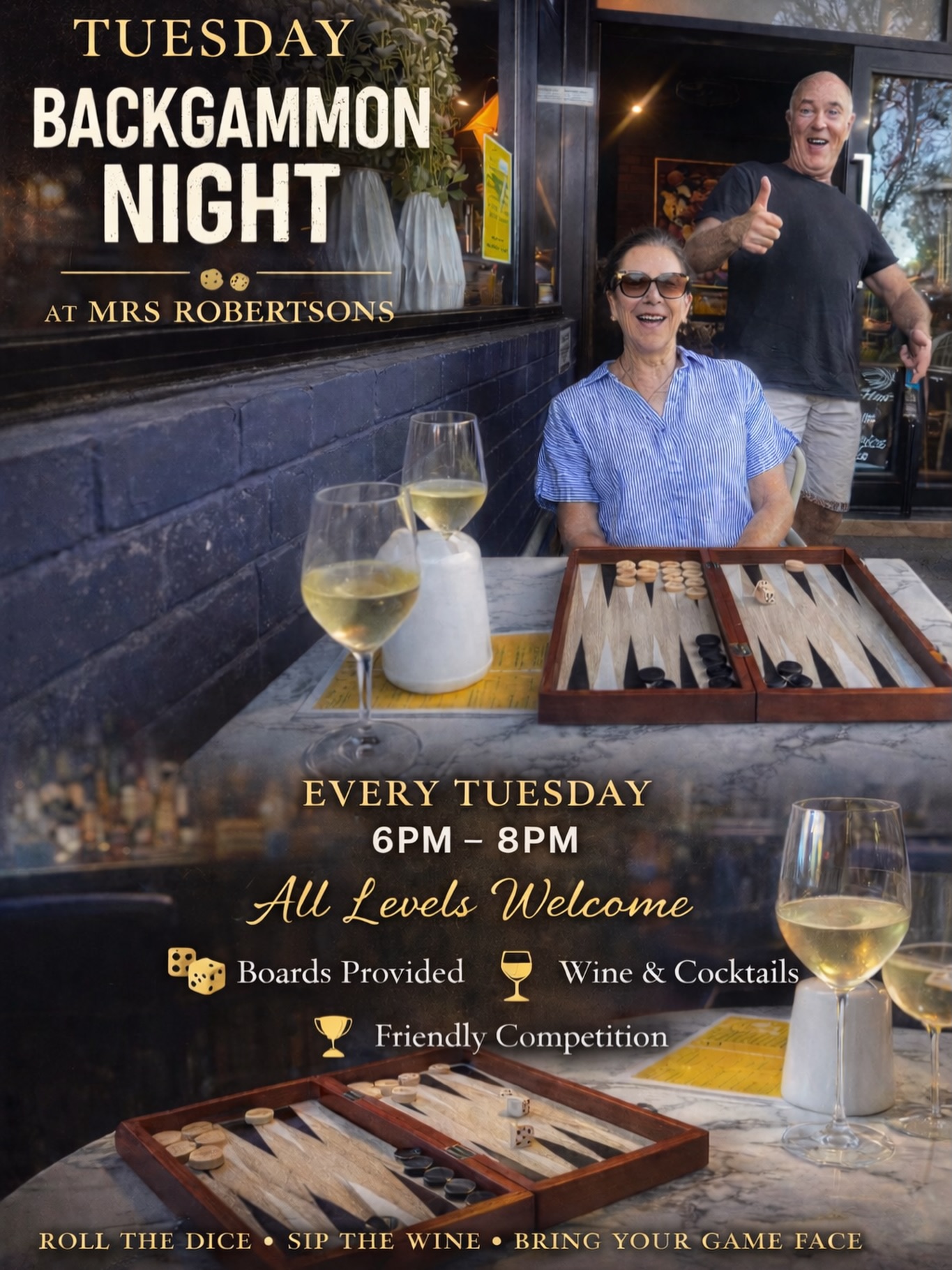 - Doors open 6pm for main course served at 6:30pm