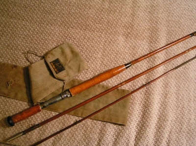 Above: 1930's antique William "Bill" Southam Split Bamboo Rod with canvas bag. Below: Advertisement