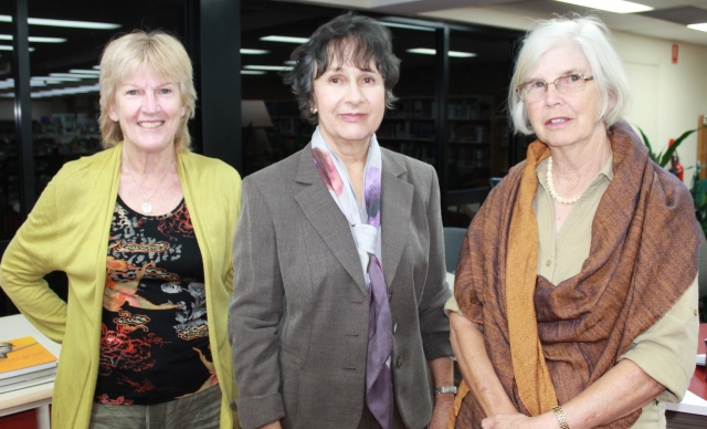 Kerry Smith, Penny Olsen and Marita Macrae at Mosman Library for Cayley & Son: The Life and Art of Neville Henry Cayley & Neville William Cayley Launc and Exhibition.