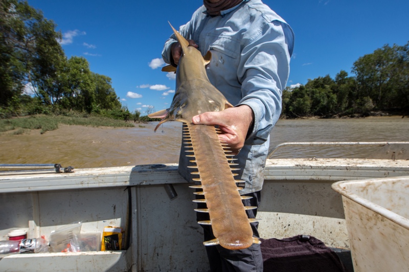 Researcher Peter Kyne with a Sawfish, photo by Michael Lawrence-Taylor.