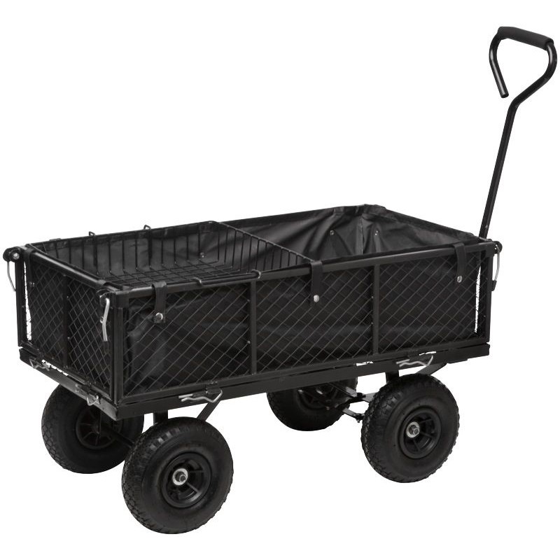 Gard&Grow® Mesh Garden Cart: $79.00 - 300kg. Steel frame. Waterproof tray liner. Foldable sides for flat bed application. Pneumatic wheels. Top rack.