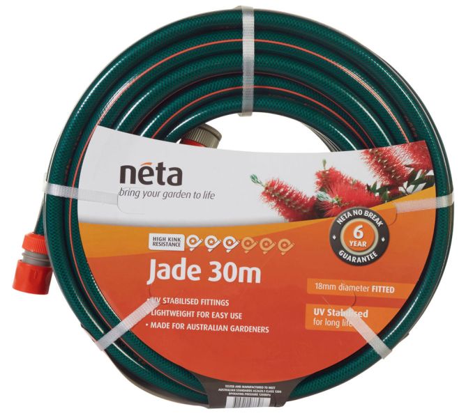 Neta Jade Fitted Hose: $49.00 - 18mm x 18m. 3/ 6 star kink rating. 6 year guarantee.