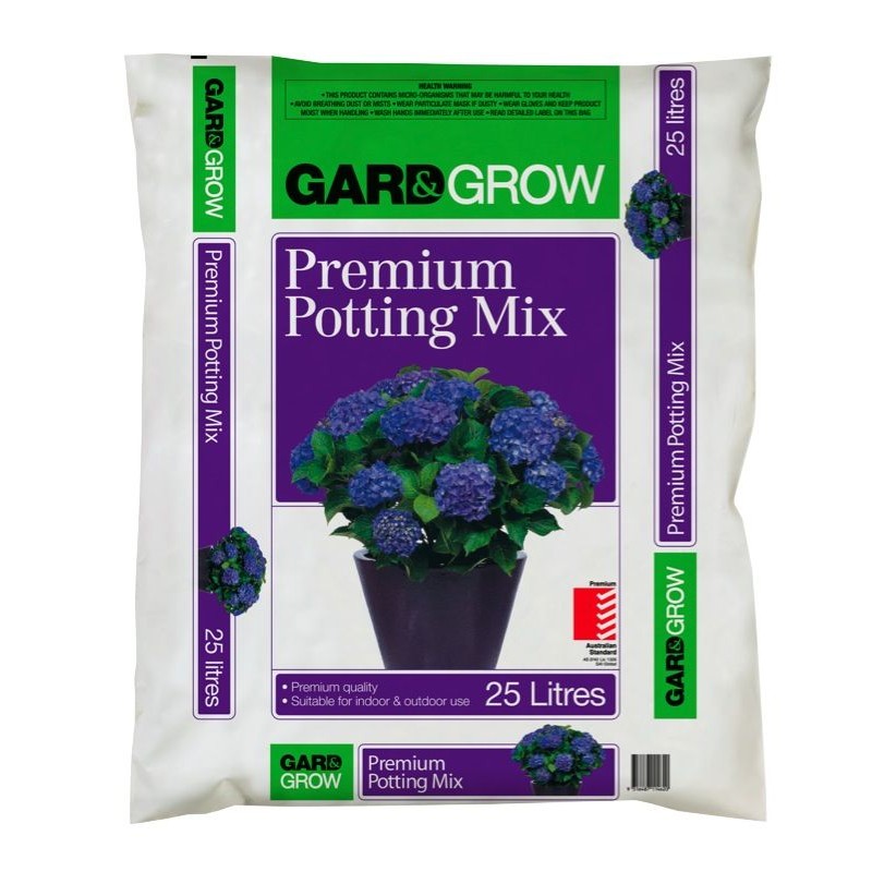 Gard&Grow® Premium Potting Mix: $8.00 - 25L. Suitable for indoor and outdoor use. Contains wetting agents and fertiliser.