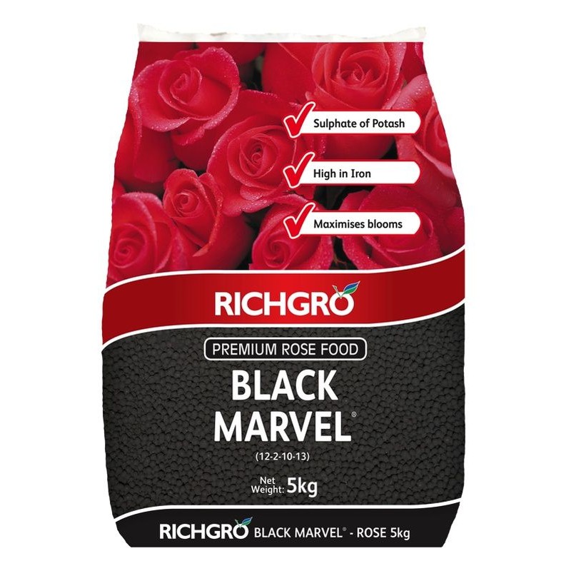 Richgro Black Marvel Premium Rose Food: $17.00 - 5kg. High analysis rose fertiliser with sulphate of potash.