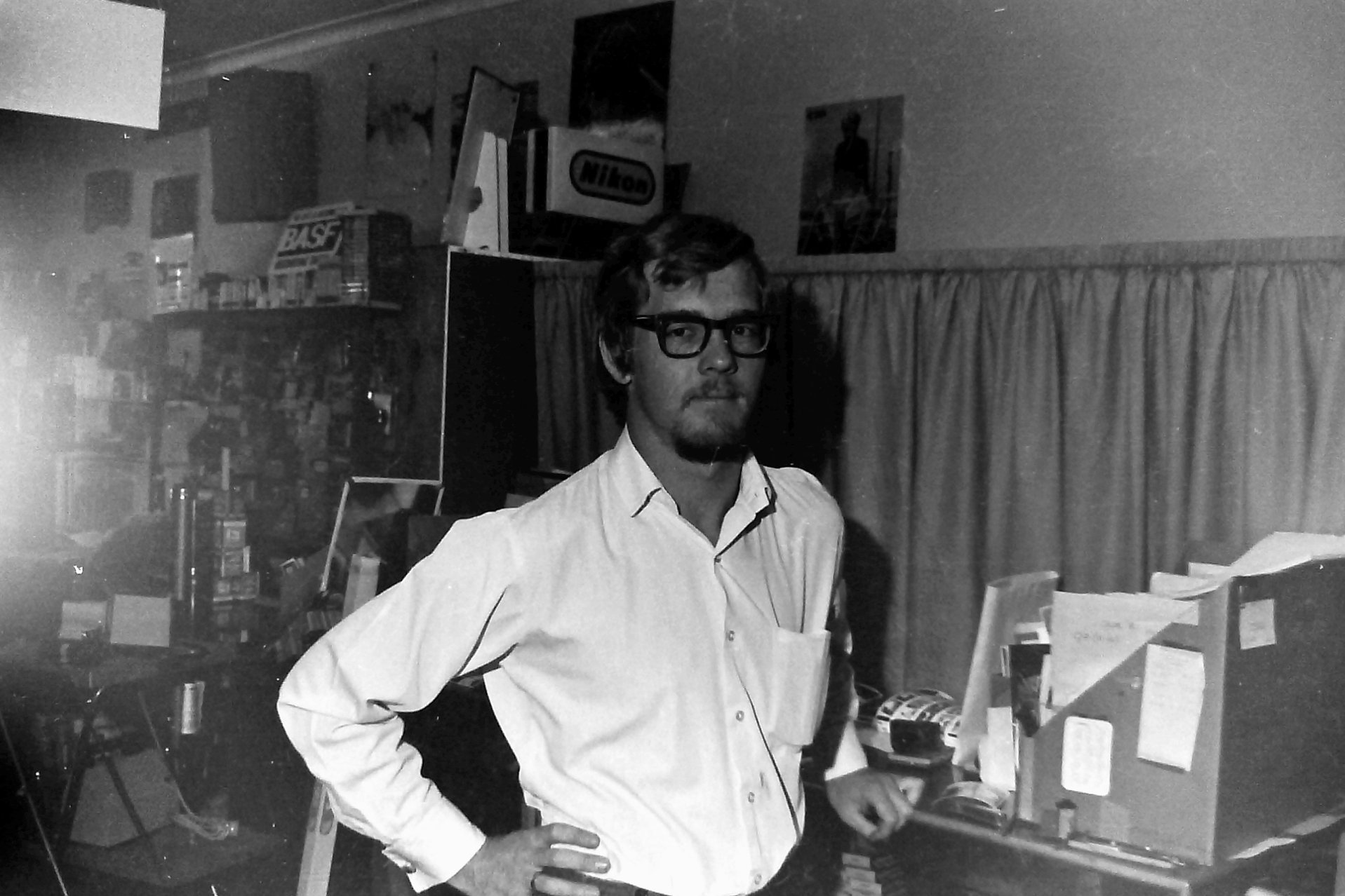 Myself at age 19 trying to look cool ( complete with my first beard ). Not much choice of glasses frames in those days.