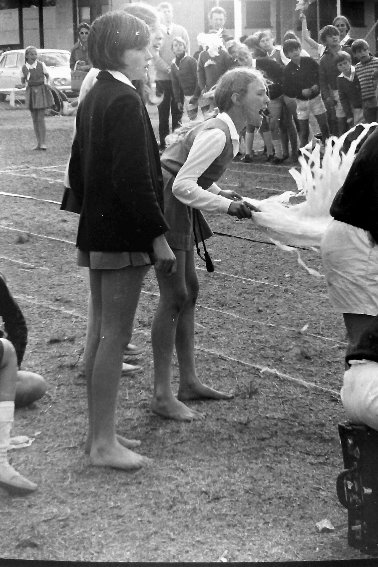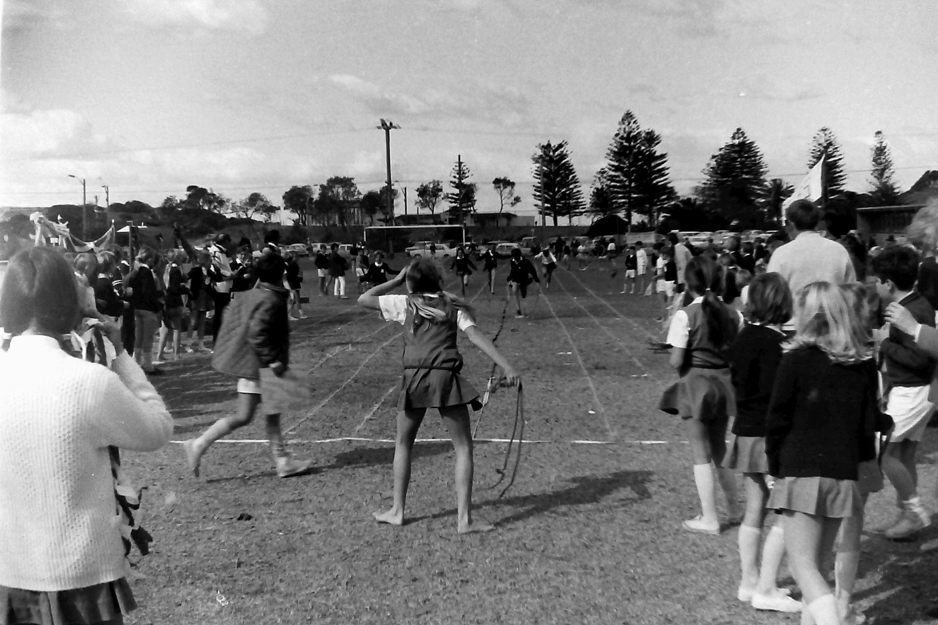1970s skipping race 2: Sports Day skipping race, 1970 – no Woolworths carpark in sight; see how the reserve runs all the way to beach