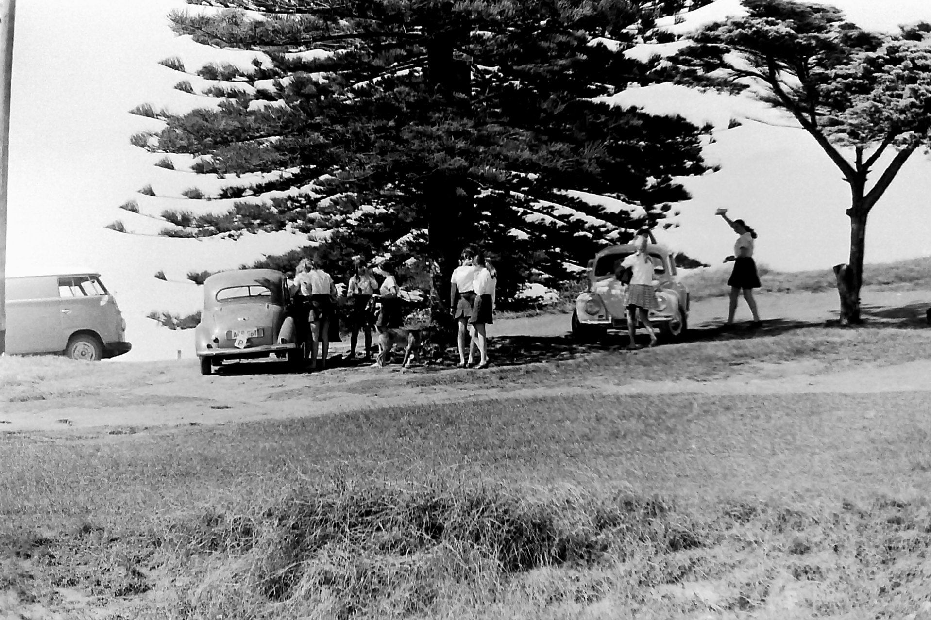 Avalon, high school girls 1970, Morris Minor in the middle of two VWs