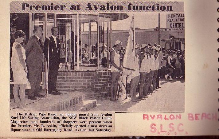 The then NSW Premier Bob Askin opened it. Clipping from when Bob Askin opened the Bottle Shop opposite Avalon Tyre Service. That's me holding the Club Pennant. - Brian Friend OAM