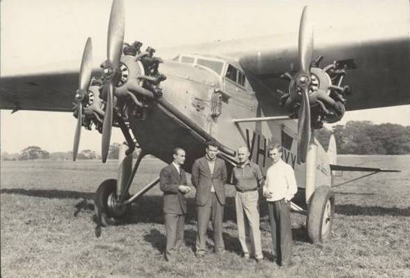 Above: Scotty Allan, Charles Ulm, P.G. Taylor and J.A.W. Edwards in front of Faith in Australia, Avro X monoplane VH-UXX at Heston Aerodrome, England, 25 July 1933, nla.pic-vn3930851, Courtesy National Library of Australia.