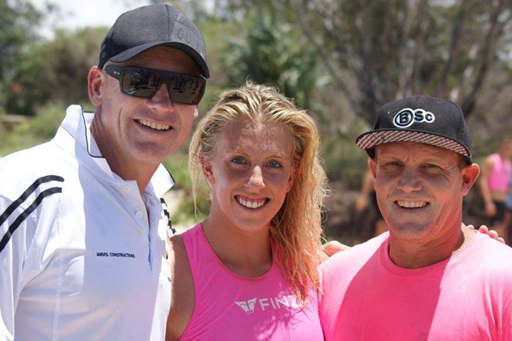 Picture: Georgia with James Brooks and Trent Herring on the Gold Coast, courtesy Newport SLSC