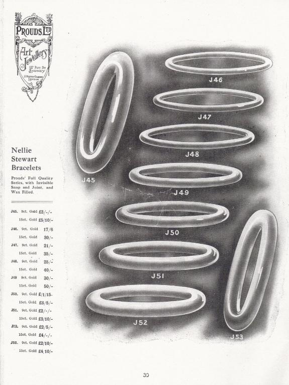 "Nellie Stewart bangles" became a popular fashion accessory for young Australian and New Zealand women in the late 19th and early 20th centuries. Usually worn on the upper arm, they were an emulation of Nellie Stewart's style.
