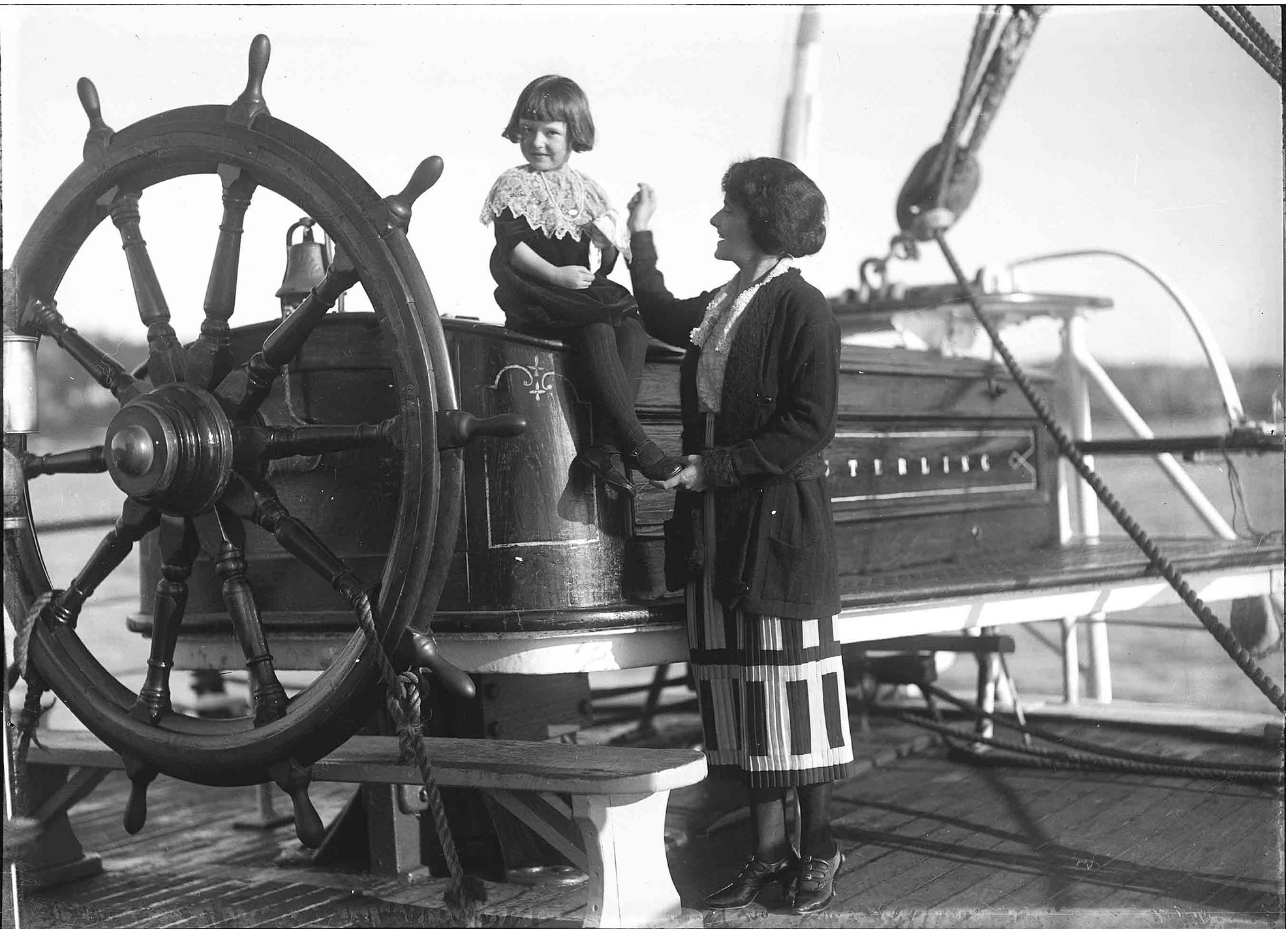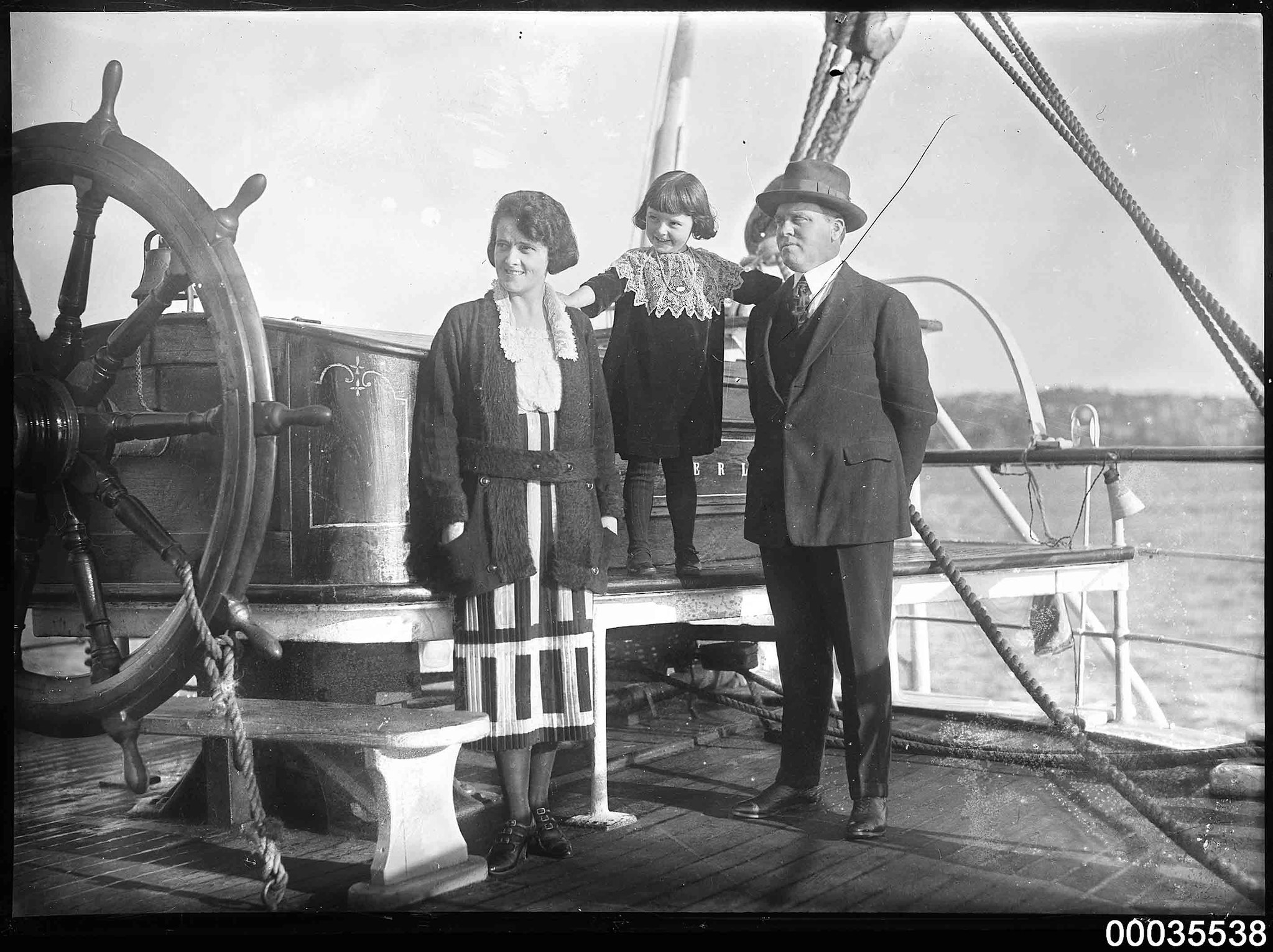 Picture: Ethel May Sterling, Margaret Francis Sterling and Captain Ray Milton Sterling on the deck of E R STERLING, 1921-1925