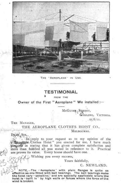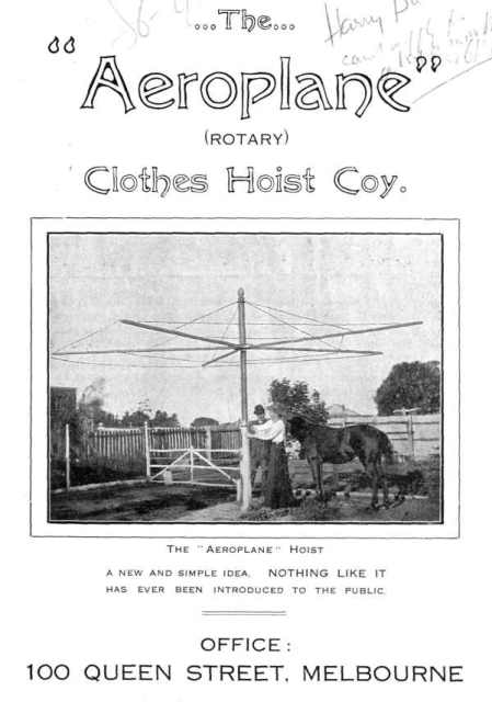 The "Aeroplane" (rotary) Clothes Hoist Coy. Date(s) of creation: c1912