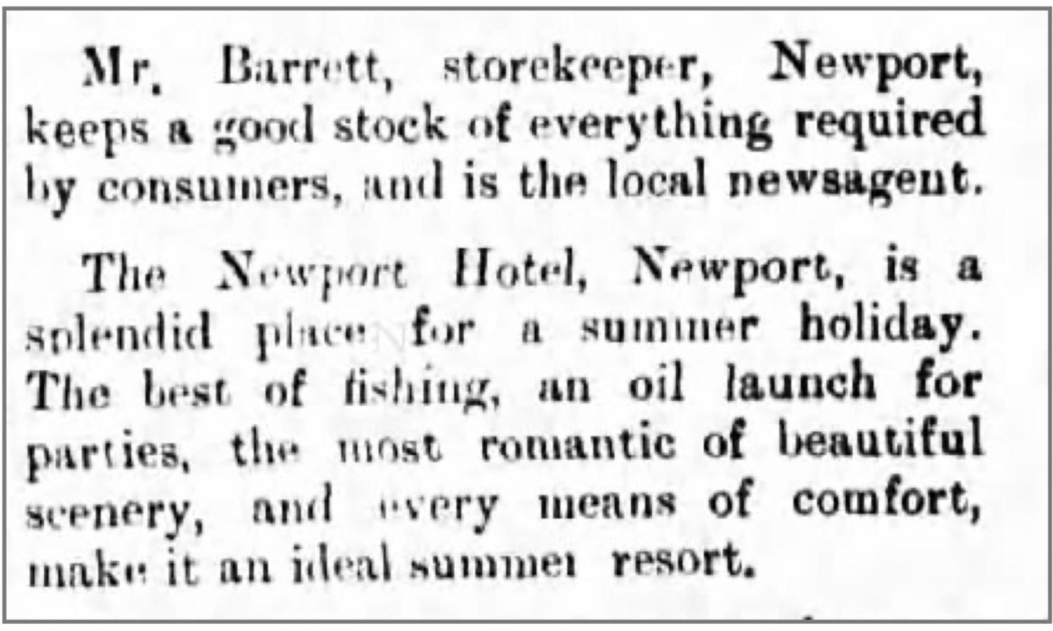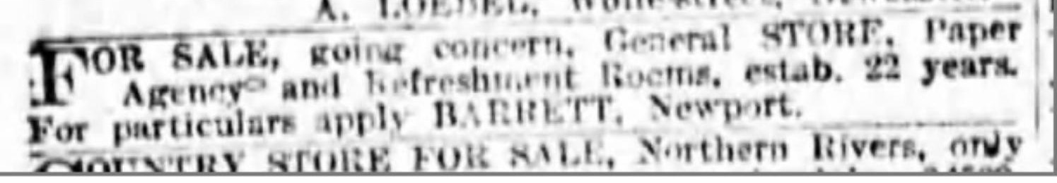 In the 1911 Sands Directory, J. F. Barrett is described as a Newport Storekeeper.